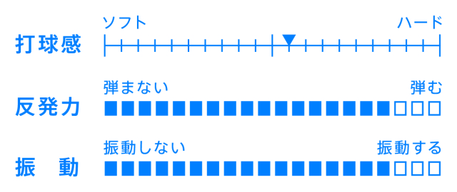 反発力の高いアラミドカーボンを組み合わせている事で攻撃と守備のバランスが良いラケット。打球は弧線を描き安定するため、オールラウンドを目指す選手のに最適。インフォメーション