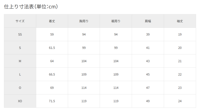 ■サイズ:SS, S, M, L, O, XO