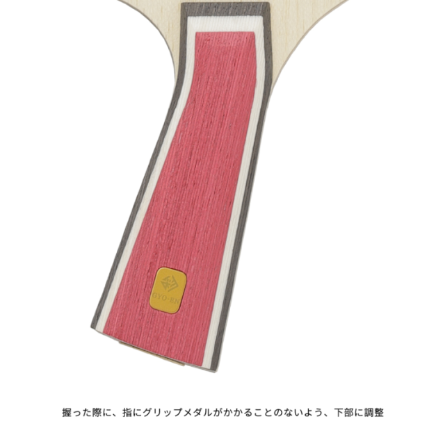 彩シリーズのテーマである「掴み」と「飛距離」を両立させながら、安定感と威力を生み出す「KVC3」をアウターに配置することで、より高い反発を生むラケットに仕上げました。繊細な台上処理では安定感を保ちながら、台に深く刺さる直線的な弾道で相手を圧倒します。