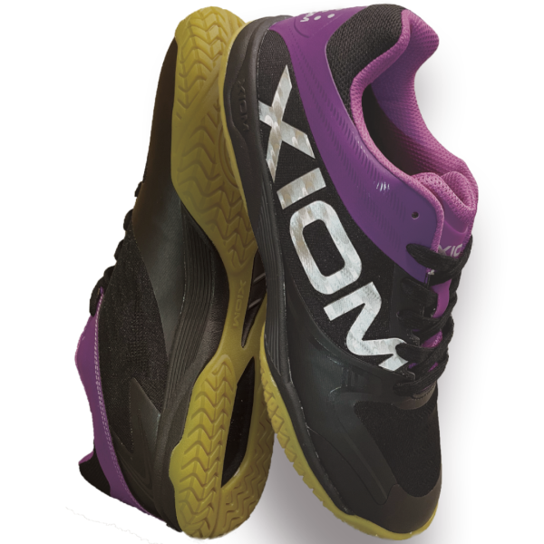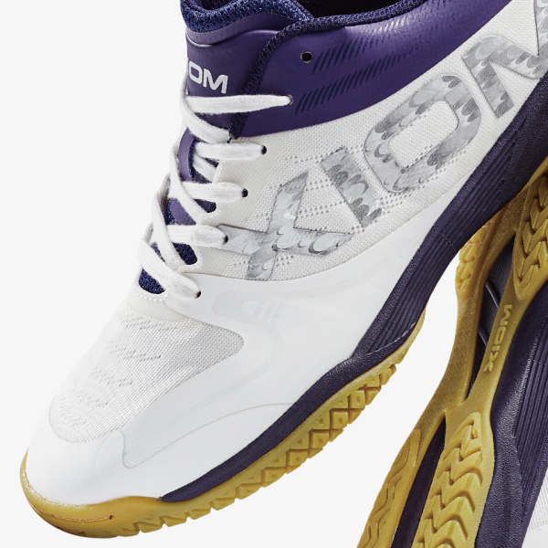 大胆にあしらわれたXIOMロゴと、ホワイト・ブラック・ネイビーのキーカラーでスタイリッシュさが際立つシューズ。足を入れた瞬間に感じられるラスト(足型)の一体感、通気性の良さと軽さが感じられるアッパーの爽快感、クッション性に優れしっかり床をグリップするアウトソールの安心感と、機能面もバッチリだ。●カラー:ホワイト(003)・ブラック×パープル(035)・ネイビー(009)