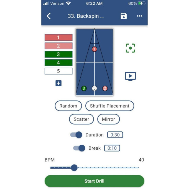 ・練習メニューをグループ化して、順番にまたはランダムにプレイできるようにします。 これらの各練習メニューは、異なるタイプのサーブから始めることができます。